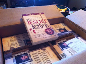 Ladies & Gentlemen, meet my first published novel, The Jesuit Letter (hint: it's in the box guarded by the intemperate cat).